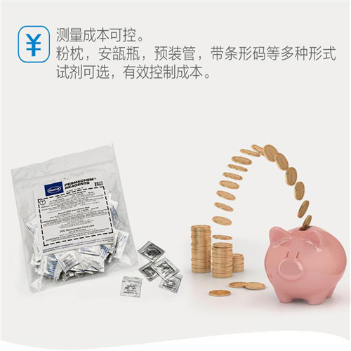 hach公司提供的dr系列分光光度计(dr6000,dr3900,dr1900等)和比色计(dr900,dr300等)使您的水样分析更加简便、快捷:只需将试剂溶解氧在水样中(注:部分水样需要前处理),按程序操作后,将样品瓶放入分光光度计或比色计中直接读数,便可得到的测试结果。一次性包装的试剂粉枕、安瓿瓶及预装管都能配合分光光度计和比色计进行水样分析。